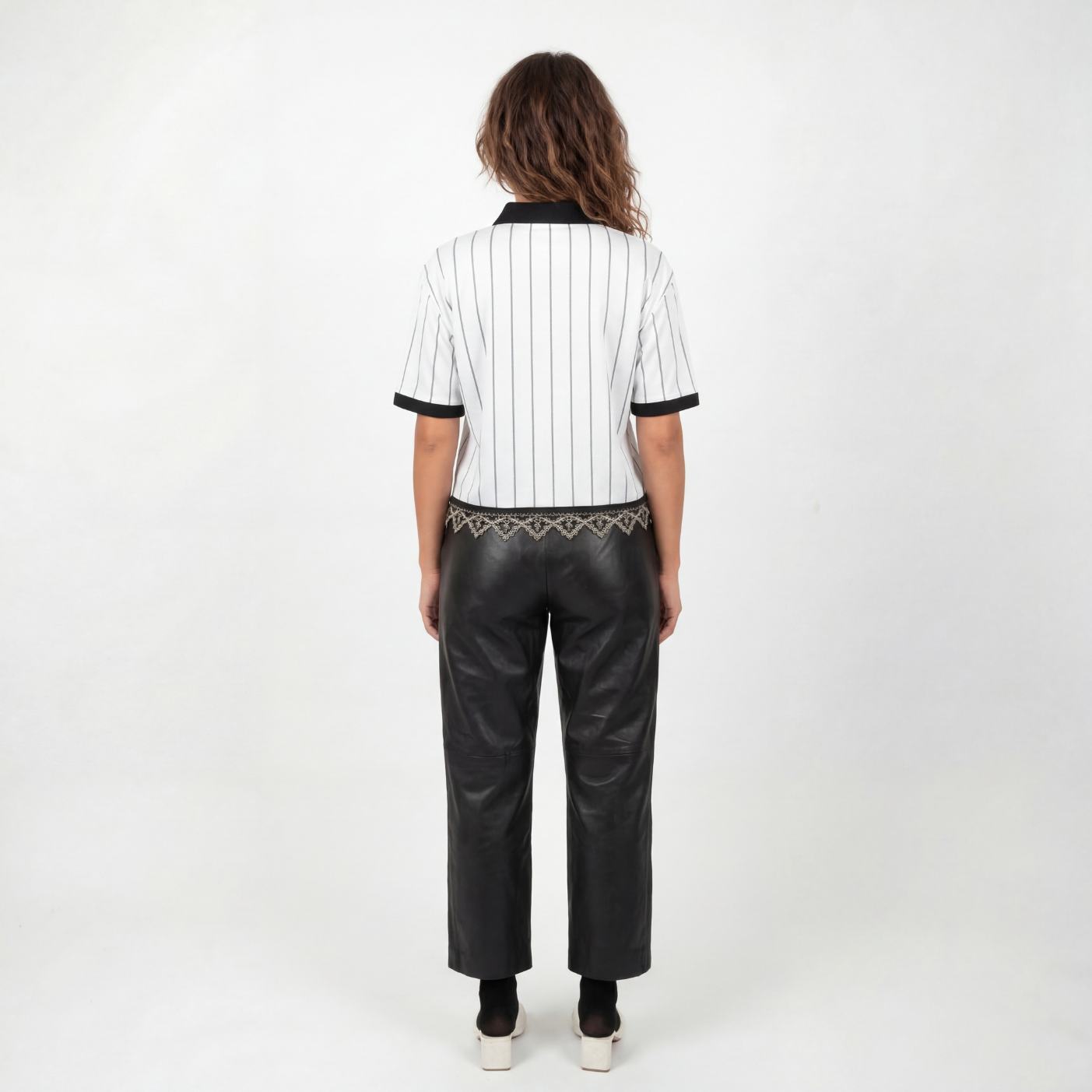 Maillot gardien de but retro rayé. Reworked avec dentelle noire et dorée, fleurs brodées.
