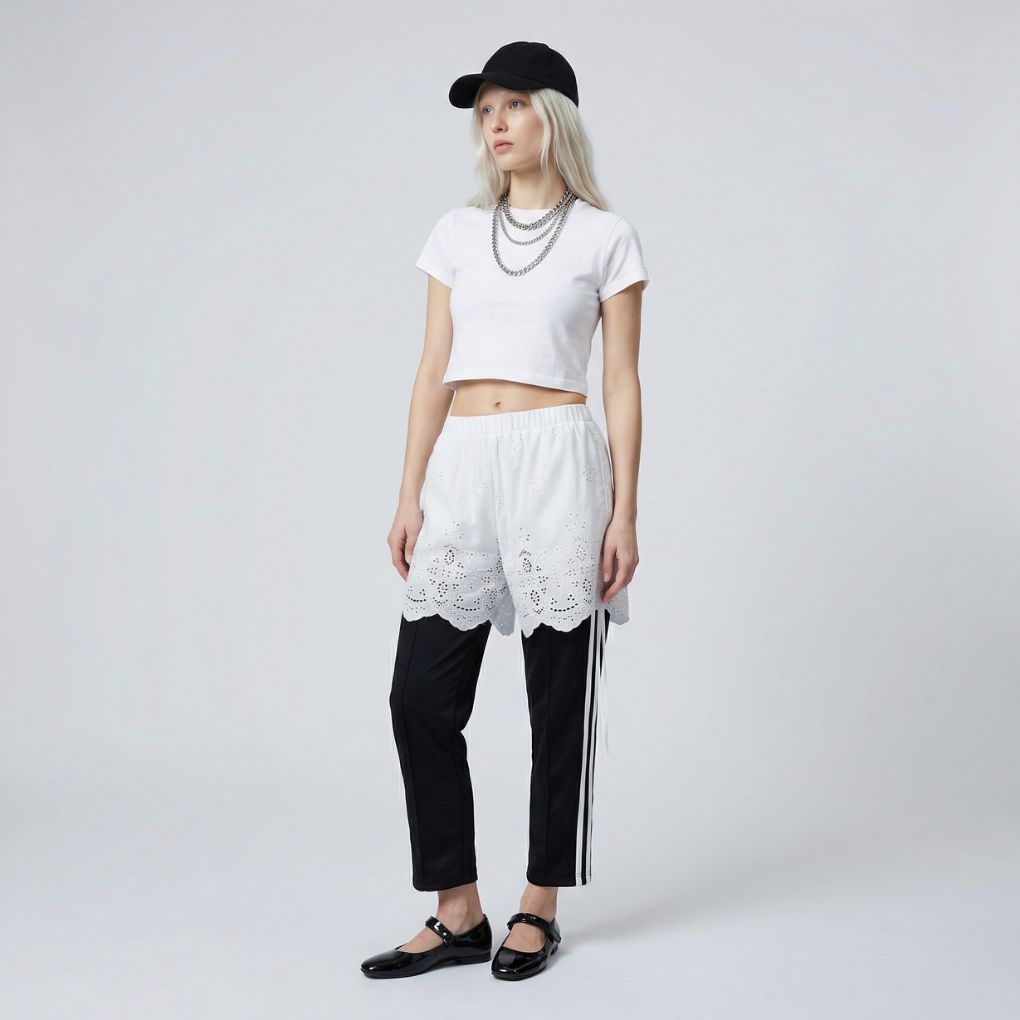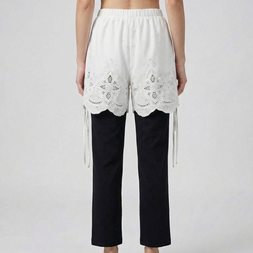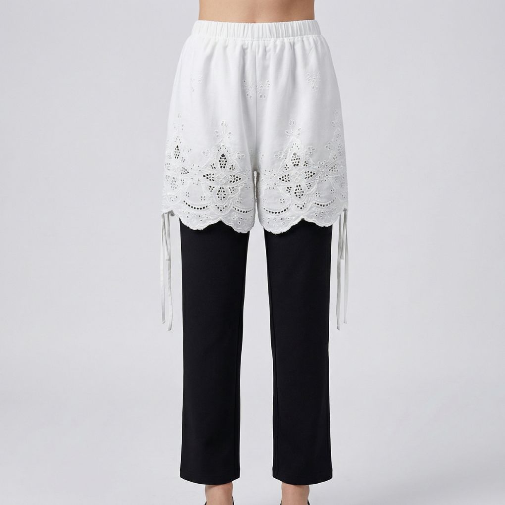 En une seule pièce, un mix unique entre un pantalon vintage et un short en dentelle. Idéal pour les amateurs.trices du layering.